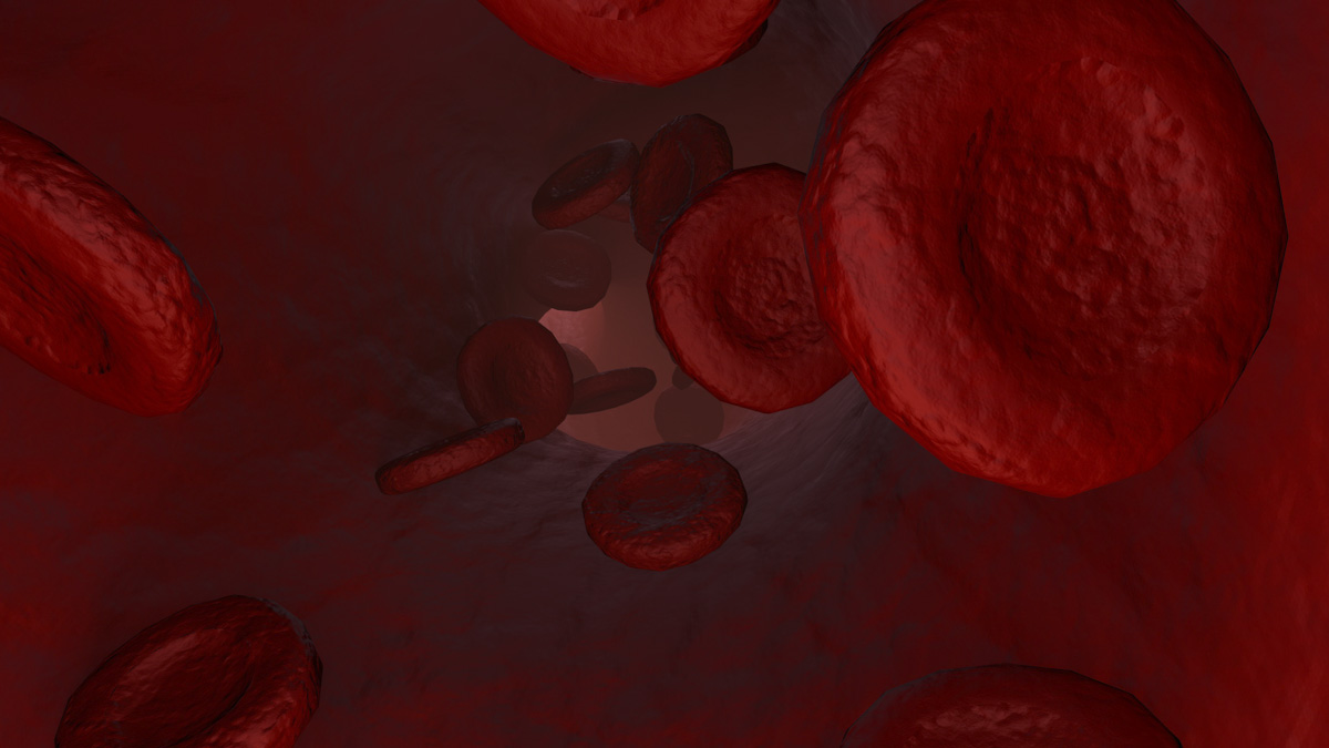 A frame from animation of a red blood cell in vessel concept.